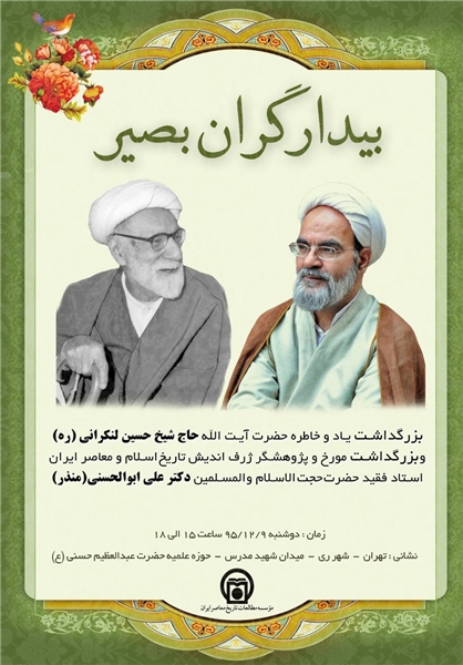 به گزارش خبرنگار تاریخ خبرگزاری فارس، همایش «بیدارگران بصیر» روز دوشنبه نهم اسفندماه ۱۳۹۵ از ساعت ۱۵ تا ۱۸ در حوزه علمیه حضرت عبدالعظیم(ع) با حضور اقشار مختلف علمی و فرهنگی به ویژه طلاب و دانشجویان برگزار میشود.