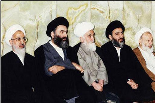 از راست:حجت الاسلام غفاری، آیت الله هاشمی شاهرودی، آیت الله مروارید،حجت الاسلام علی مروارید