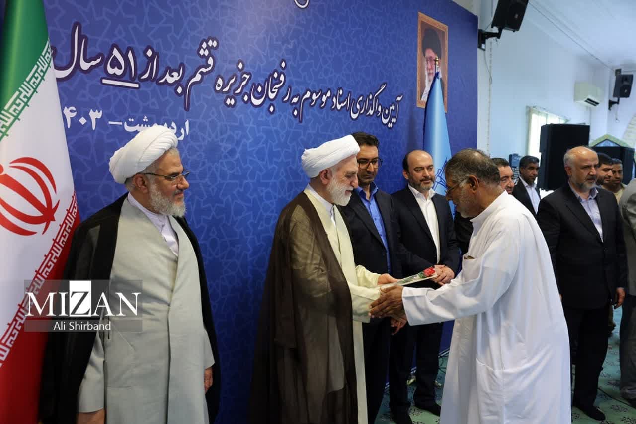 «قهرمانی» رئیس کل دادگستری استان هرمزگان نیز در این آیین اظهار کرد: فرآیند صدور اسناد موسوم به رفسنجان جزیره قشم در ریل قرار گرفته و به زودی همه این اسناد تعیین تکلیف خواهند شد.