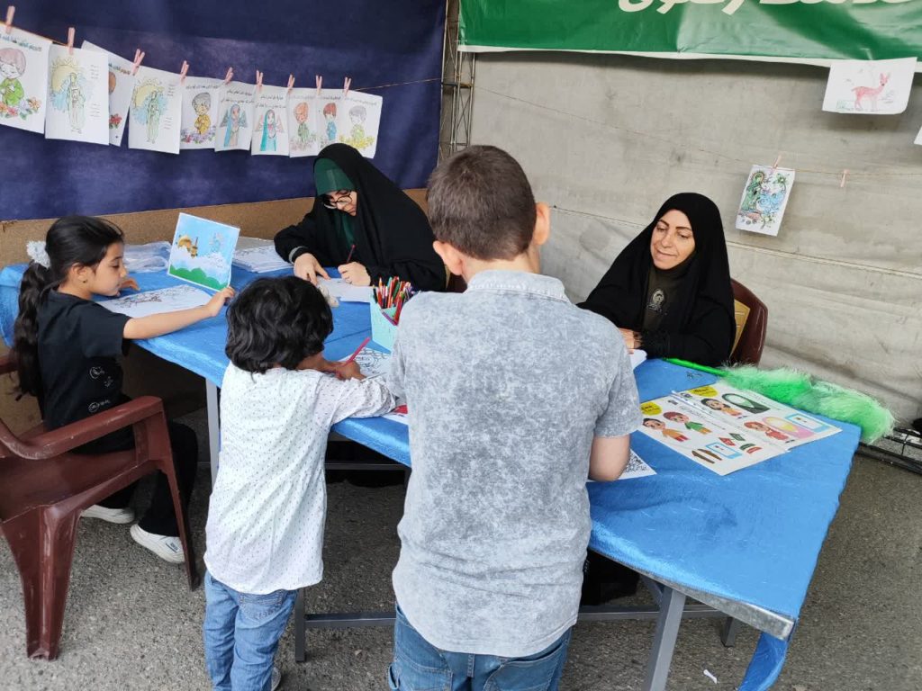 از همه جذاب تر غرفه کودکان بود که دلهای کوچک و قلب های پاک کودکان را کنار هم نشاند تا با نقاشی و رنگ آمیزی گنبد رضوی عشق امام رضا علیه السلام در دلشان بیشتر شود.