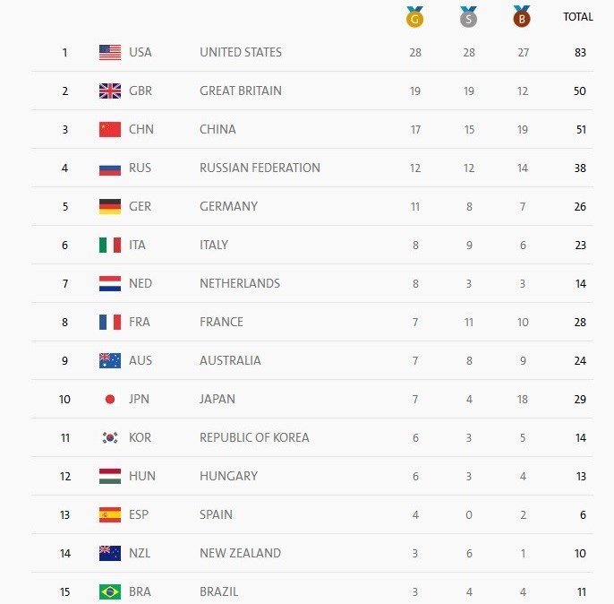 عکس ۱۵ کشور اول جدول ردهبندی در زیر آمده است: