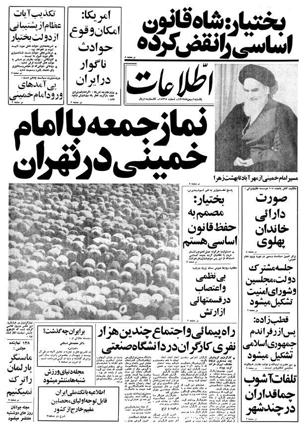 در صفحه ۸ روزنامه اطلاعات یکشنبه ۱ بهمن ۵۷ در این باره آمده است: خبرگزاری فرانسه از قول محافل ایرانی طرفدار امام خمینی در پاریس گزارش داد که رهبر شیعیان جمعه به ایران بازخواهند گشت.