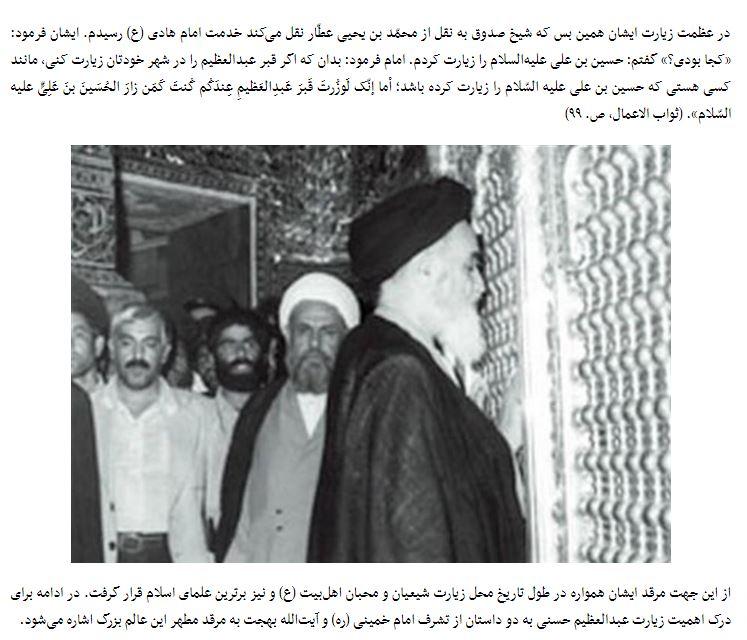 در بیشتر این گزارشها، تصاویری از زیارت حضرت امام منتشر شد که به نظر میرسد این تصاویر مربوط به حرم حضرت عبدالعظیم نیست، زیرا زیارت حضرت امام به صورت بسیار سریع و مخفیانه اتفاق افتاده است و تصویری از این زیارت ثبت نشده است و رسانهها نیز به خاطر محذوریت رسانهای دست به انتشار این تصاویر زدهاند که برخی از آنها را در ادامه مشاهده میکنید: