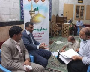 سالخورده افزود: همچنین در مسجد امام حسین علیه السلام خیابان سی متری جی، میز خدمت مشاوره حقوقی برگزار و آقای دکتر خادم رابط کانون حقوقی منطقه ۹ به نمازگزاران این مسجد مشاوره حقوقی ارائه داد. شایان ذکر است این خدمت هر هفته در یک مسجد منطقه برگزار خواهد شد.