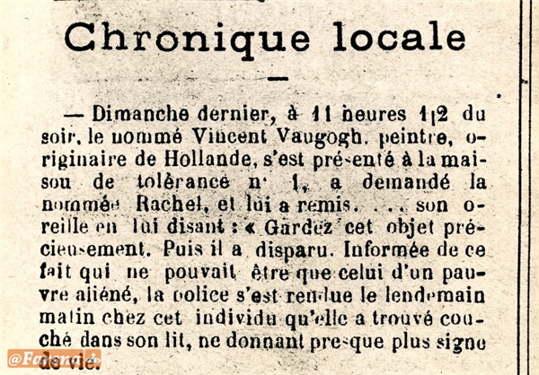 خبر خودکشی ونگوگ در یک روزنامه محلی