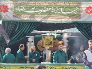 خادمیاران کانون خدمت رضوی منطقه۵ تهران در مراسم عزاداری سالروز شهادت حضرت زهرا(س) با برپایی چایخانه حضرت رضا(ع) شرکت کردند.