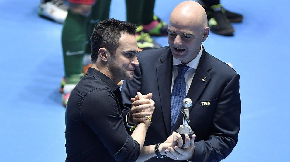 رئیس فیفا که در سالن کولیسئو الپوبلوی شهر کالی حضور داشت، در پایان دیدار ایران و پرتغال که با برتری تیم ملی فوتسال کشورمان به پایان رسید از جایگاه ویژه به سمت زمین آمد تا علاوه بر تبریک به تیم ایران، از فالکائو تقدیر کند. اینفانتینو با اهدای جام مینیاتوری و نمادین این دوره از رقابتها به فالکائو، از ستاره فوتسال برزیل تقدیر کرد.