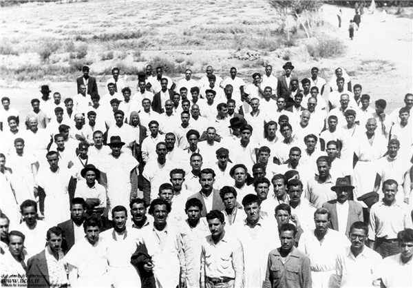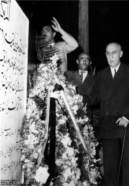 نمایی از حضور دکتر مصدق بر مزار شهدای ۳۰ تیر درگورستان ابن بابویه تهران