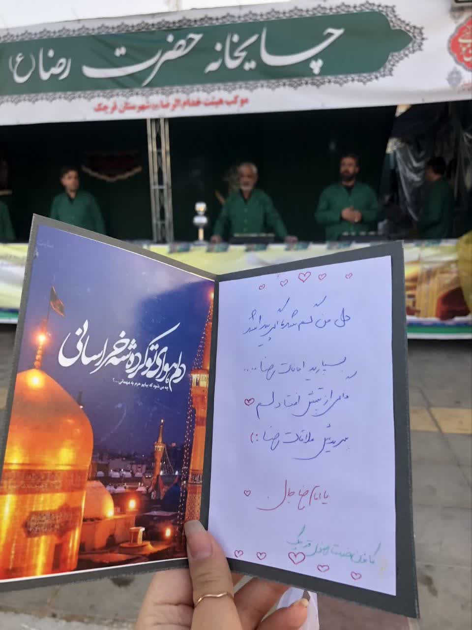 علی مدد ادامه داد در این چند روز فعالیت چایخانه با توجه به مناسبت آن روز روایتی در قالب قصه و داستان به کودکان گفته میشد و آموزش خواندن هر روز سه مرتبه سوره توحید را داشتند، در شب شهادت امام رضاعلیه السلام دلنوشته های کودکانه هم داشتیم، و همچنین میز خدمت برای معرفی کتاب سیره علمی و عملی امام رضا علیه السلام که در این راستا به معرفی آن حضرت پرداخته شد.