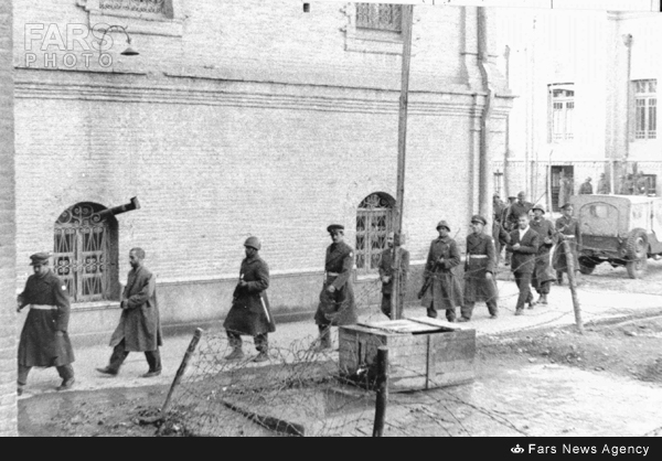 نواب صفوی و فدائیان اسلام در محوطه زندان عشرتآباد در حال عزیمت به دادگاه