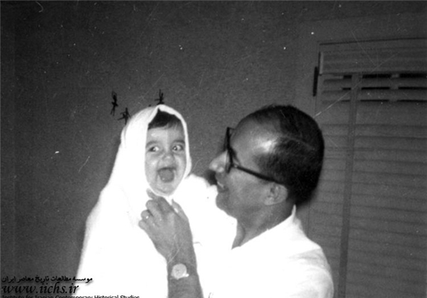 شهید دکتر مصطفی چمران در کنار فرزندش در دوران اقامت در آمریکا