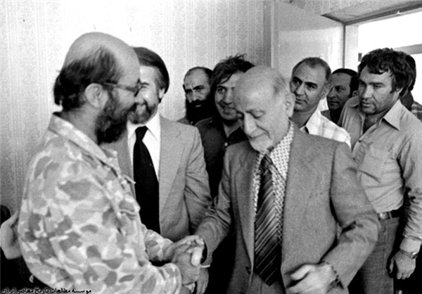شهید دکتر مصطفی چمران در کنار نخست وزیر دولت موقت در سفر وی به کردستان