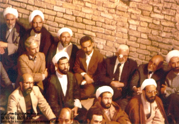 شهید دکتر مصطفی چمران در کنار تنی چند از نمایندگان اولین دوره از مجلس شورای اسلامی در حاشیه یکی از مراسم