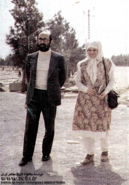 شهید دکتر مصطفی چمران در کنار همسرش غاده جابر در بازگشت به ایران پس از پیروزی انقلاب اسلامی