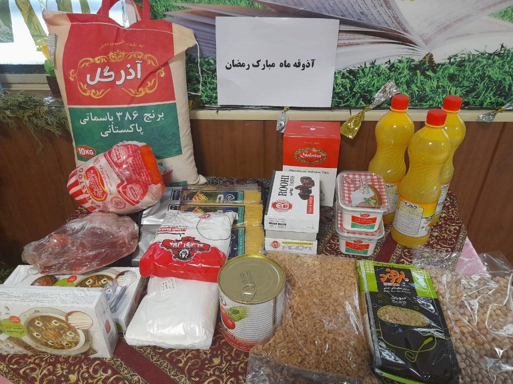 این بسته ها شامل برنج، روغن، ماکارانی، حبوبات، گوشت گوسفندی، مرغ، چای، قند و شکر، سویا، رشته آشی و پلویی، رب، خرما و پنیر بود.