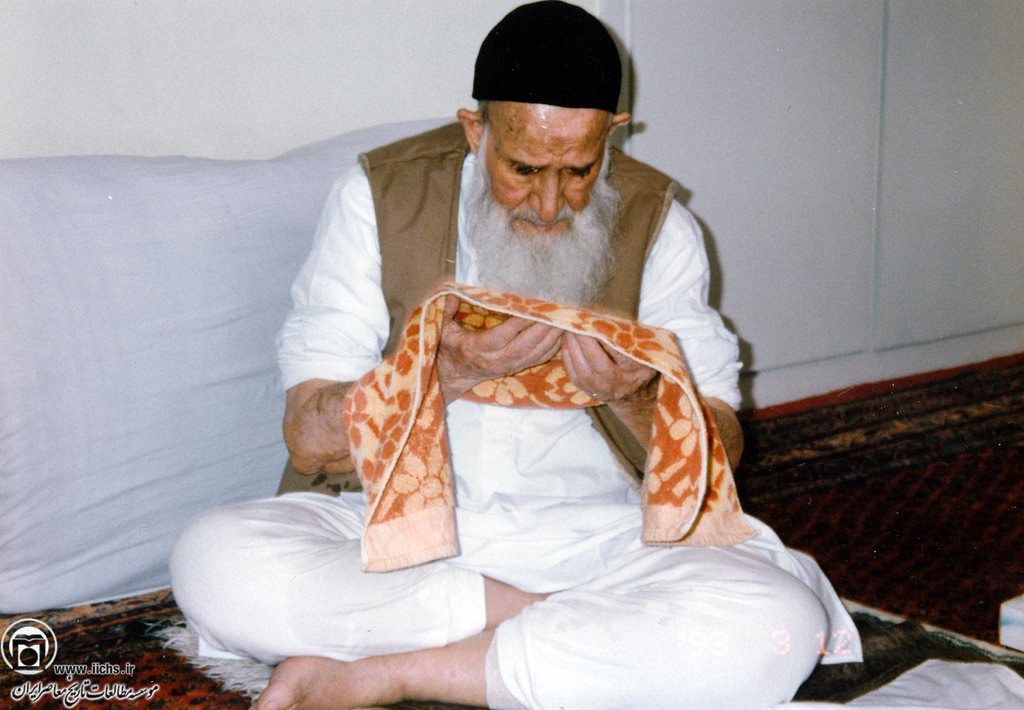 دهه ۱۳۶۰. قم؛ آیتالله العظمی سیدمحمدرضا گلپایگانی در حال وضو برای اقامه نماز در منزل شخصی