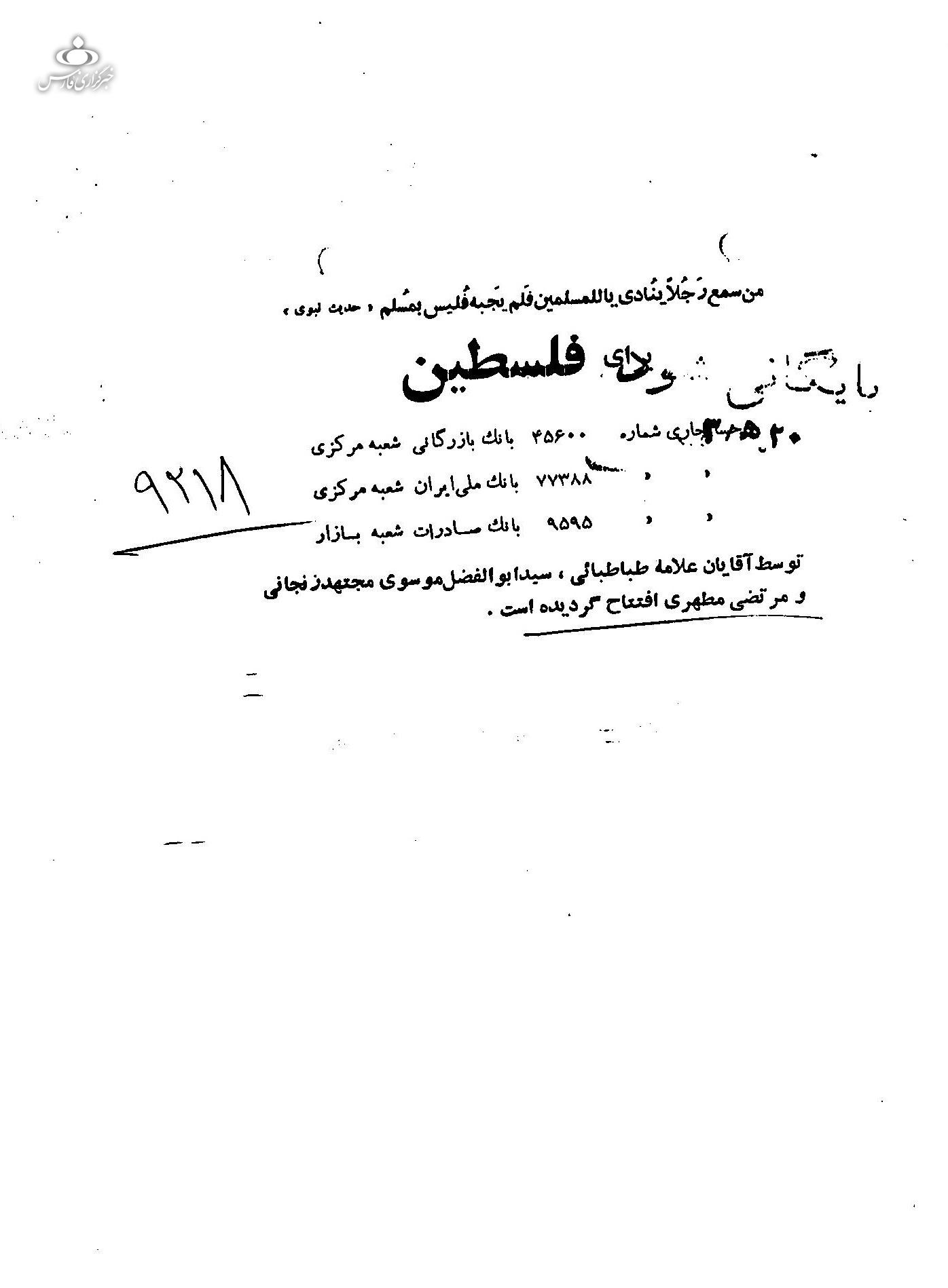 حسابی که علامه طباطبایی برای کمک به فلسطین باز کرد+سند