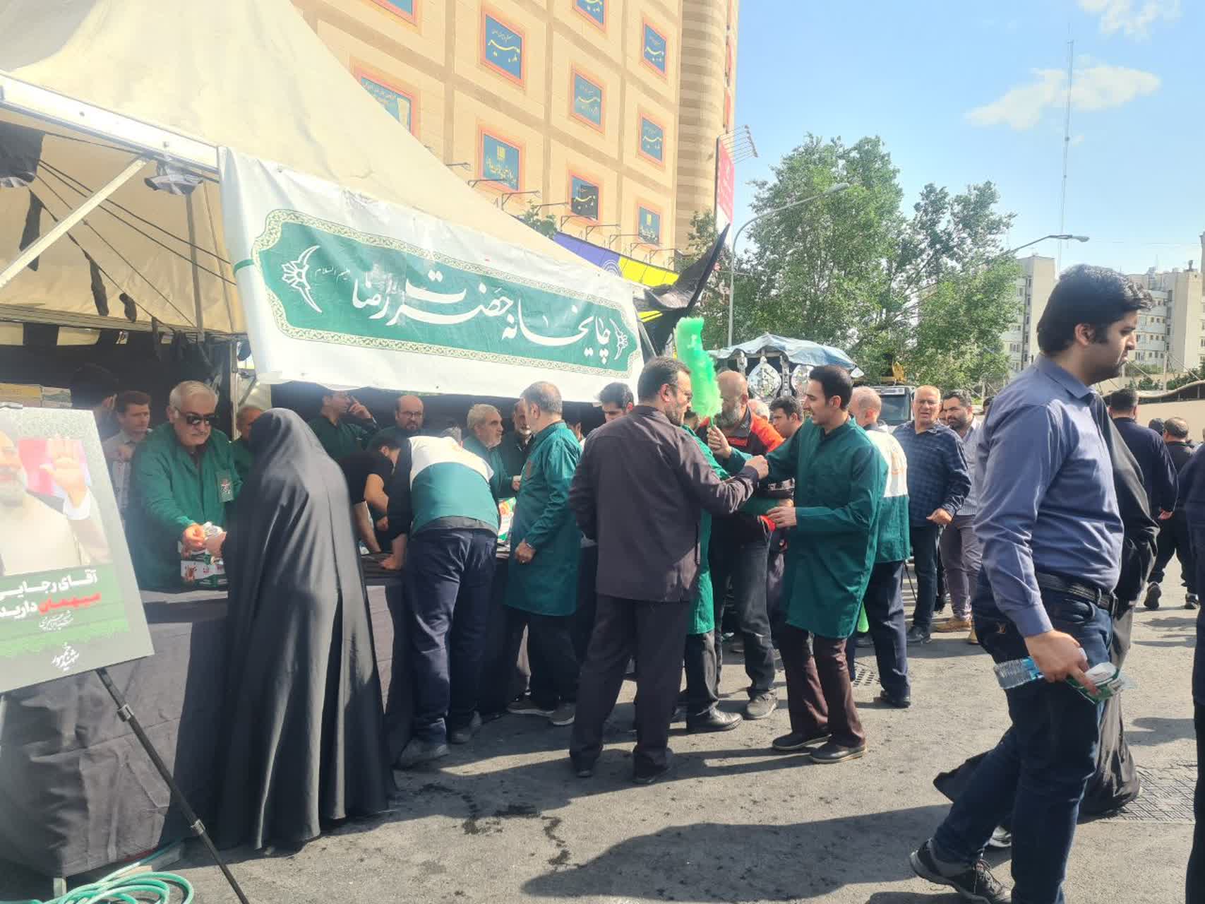 با شروع مراسم لحظه به لحظه موج جمعیت گسترده می‌شد و خادمیاران کانون خدمت رضوی منطقه ۶ تهران در ضلع جنوب شرقی میدان ولیعصر (عج) و زیر بیرق امام رضا علیه السلام با صبر و شکیبایی و با سرعت از مردم مضطرب و اندوهگین پذیرایی می کردند.