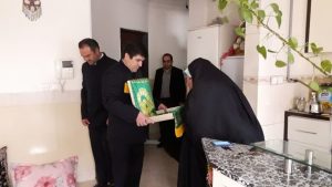 خادمیاران کانون خدمت رضوی شهرستان ملارد در اجرای این طرح با حضور در معیت پرچم متبرک حرم مطهر امام رئوف علی بن موسی الرضا المرتضی(ع) در منزل خانواده شهدا حاضر و زمینه تیمن و تبرک جستن پدران،مادران،همسران شهدا و… را فراهم کردند.