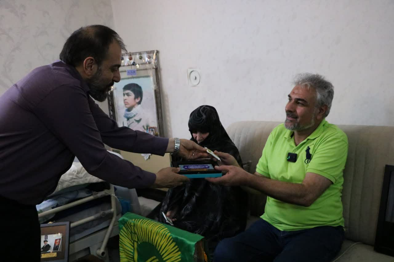 شگفتنی است خادمیاران کانون ایثار و شهادت به رسم همیشگی خود از خانواده معزز شهید با اهدای تبرکات رضوی تجلیل کردند.