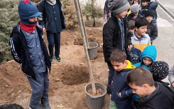 زنگ درختکاری در دبستان میعاد زیر سایه شمس الشموس