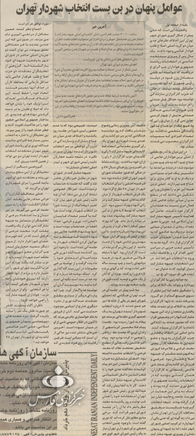 روزنامه نشاط در تحلیلی در تاریخ ۵ خرداد ۱۳۷۸ مینویسد: نتیجه انتخابات گرچه شکست مطلق محافظهکاران را در تهران نشان میداد (بهگونهای که حتی یکی از آنها وارد ترکیب اصلی شورای شهر نشد) اما به شیوهای پنهان نشان از پیروزی جبهه مشارکت داشت. این پیروزی زمانی وضوح بیشتری یافت که روز دوشنبه هنگامی که بر سر دو کاندیدای پست شهرداری تهران یک رأیگیری مقدماتی انجام شد کاندیدای جبهه مشارکت ۹ رأی و کاندیدای حزب کارگزاران ۶ رأی را از آن خود ساختند.