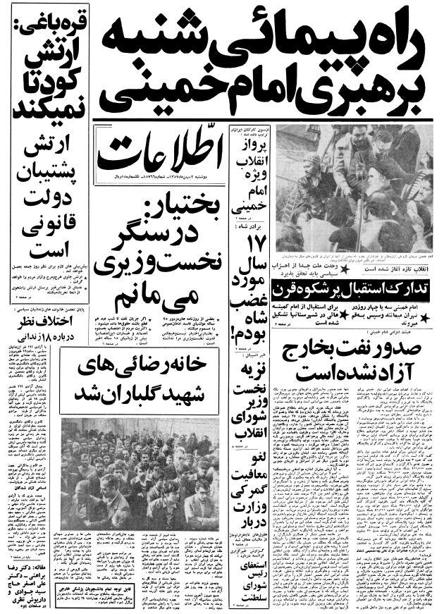 روزنامه اطلاعات در گزارشی با عنوان «راهپیمایی روز شنبه به رهبری امام خمینی» به این موضوع پرداخته و نوشته است: خبرگزاری فرانسه- اطرافیان حضرت آیت الله خمینی در نوفللوشاتو تأکید کردند که نظامیان ایرانی جرأت نخواهند کرد با بازگشت رهبر شیعیان به تهران مخالفت کنند. امام خمینی دیروز تصمیم گرفتند پس از ۱۵ سال تبعید به ایران بازگردند.