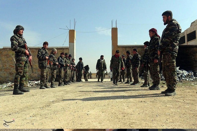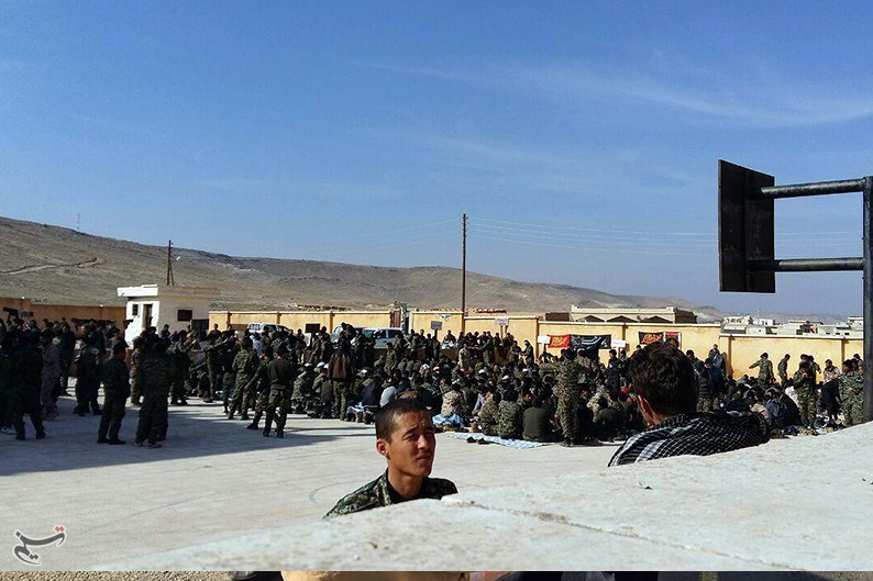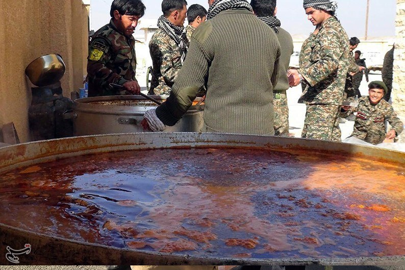 ظهر امروز رزمندگان تیپ امام حسن(ع) لشکر فاطمیون در منطقه خناصر در اطراف حلب به عزاداری شهادت حضرت فاطمه(س) پرداختند.
