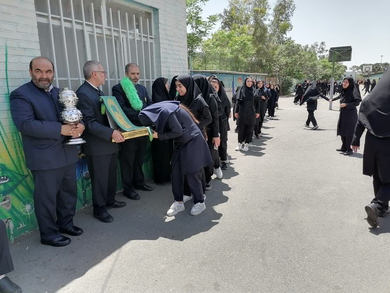 مدرسه دخترانه حضرت نرجس (س) در خانی آباد نو، میزبان خادمیاران رضوی و پرچم متبرک امام رضا (ع) بود.