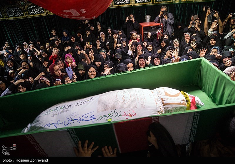 بانوان حاضر در مراسم با باز کردن مسیری برای تشییع پیکر شهید در حسینیه معراج، آغازگر این مراسم بودند. پیکر مطهر این شهید مدافع حرم گرد تابوت شش شهید گمنام دوران دفاع مقدس واقع در ضریح معراج شهدا روی دستان مردم تشییع شد.