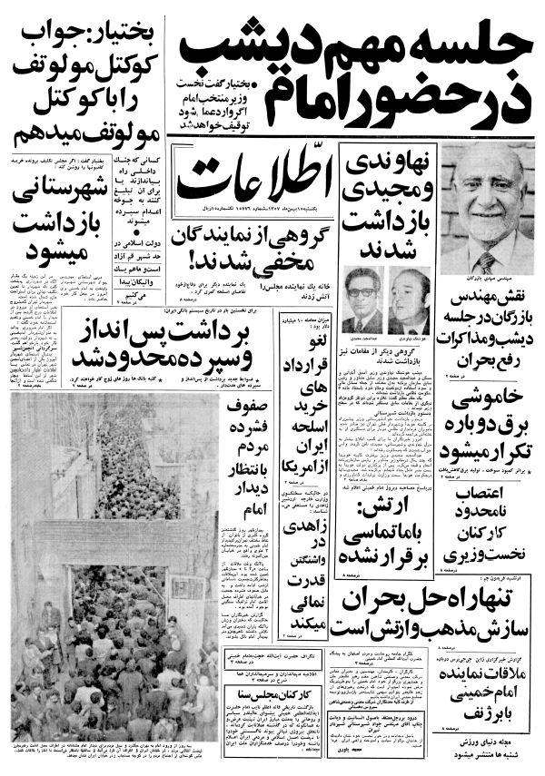 خبرنگار سیاسی اطلاعات که در جریان این تلاشها بود توانست از تشکیل یک جلسه محرمانه بین امام و اعضای شورا، نخستوزیر احتمالی منتخب امام و تنی چند از مشاورانشان اطلاع پیدا کند.