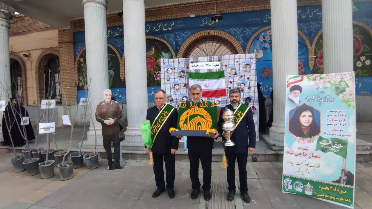 با حضور خادمیاران کانون خدمت رضوی منطقه ۱۲ تهران در معیت پرچم متبرک رضوی کاشت نهال به نام شهدا با همکاری بنیاد شهید کاشته شد .