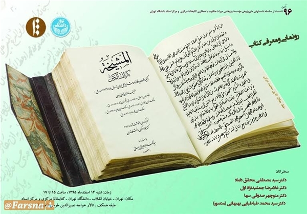 به گزارش خبرگزاری فارس، نود و ششمین نشست از سلسله نشست های متن پژوهی مؤسسۀ پژوهشی میراث مکتوب با همکاری کتابخانۀ مرکزی و مرکز اسناد دانشگاه تهران به رونمایی و معرفی کتاب المشیخه (کنز السالکین) (گنجینۀ خطوط و یادگارنامۀ مشاهیرعلمی ایران از سال ۸۴۵ ـ ۱۰۲۲ هـ . ق) اختصاص دارد.