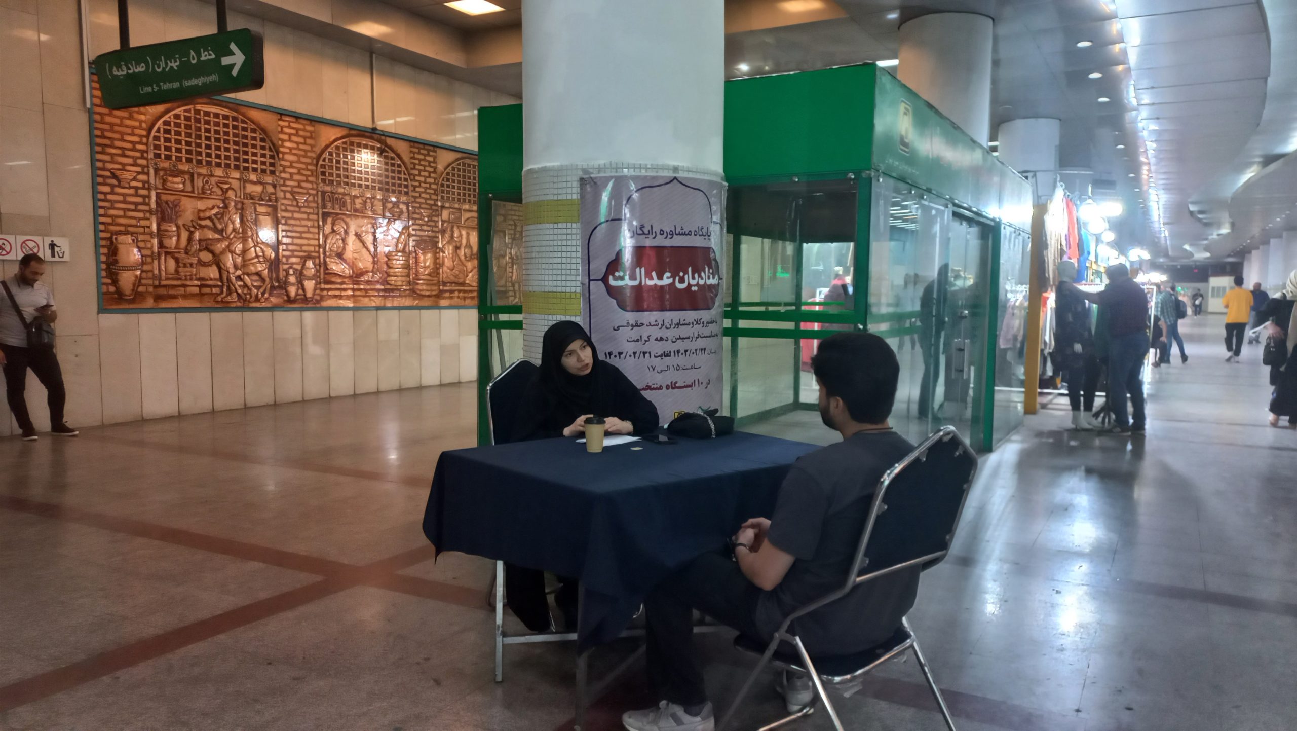 خادمیاران کانون حقوقی خدمت رضوی منطقه۵ تهران در راستای اجرای طرح منادیان عدالت در دهه کرامت میز خدمتی در ایستگاه مترو ارم سبز دایر کردند.