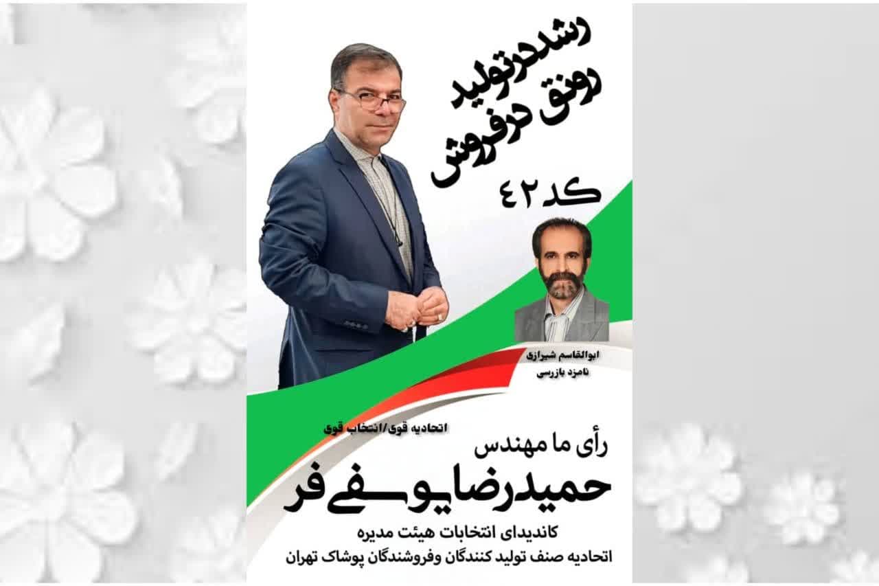 اینک وی به دلیل تحول و نوگرایی در صنعت پوشاک؛ پا در عرصه انتخابات اتحادیه پوشاک گذاشته تا با توجه به ظرفیت های خود در راستای شعار خود