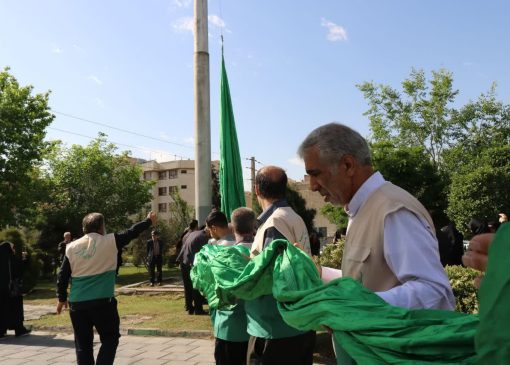 حضور خادمیاران با پرچم متبرک امام رضا(ع) در هیئت شیفتگان نبی اکرم(ص)