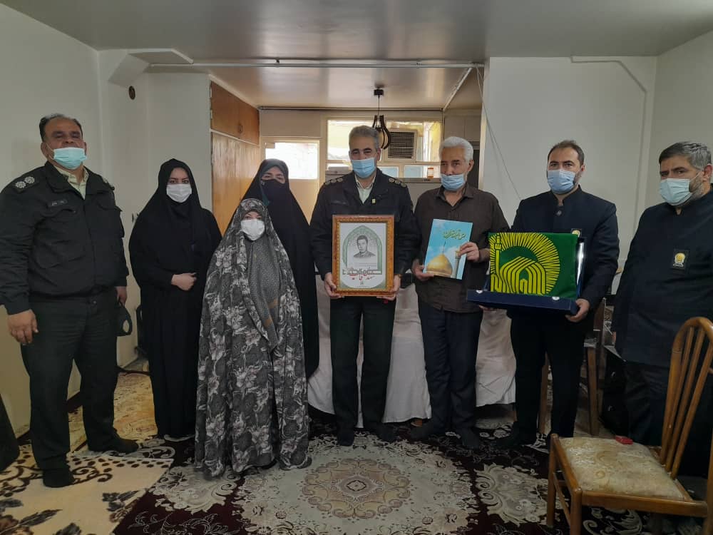 جمعی از خادمیاران و کانون های خدمت رضوی به همراه افسران کلانتری محل درمعیت پرچم متبرک آستان قدس رضوی درروز ۲۳ فروردین ، با خانواده معظم" احمدجان فشان" در منطقه ۱۷ تهران دیدار نموده و از ایثارگری های آنان تکریم و تجلیل کردند.