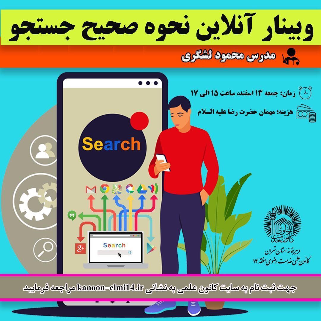 به گزارش آسمانی نیوز از شبکه خادمان رسانه ای کانون های خدمت رضوی استان تهران، جستجو کردن در رابطه با یک کار تحقیقاتی و هر موضوعی لازمه و شالوده آن کار می باشد. جستجو به عنوان اولین های روند یک فرآیند است تا بتوان یک برنامه ریزی درست صورت پذیرد. در همین راستا کانون علمی منطقه ۱۴ تهران وبینار آنلاین نحوه صحیح جستجو را به مدت دو ساعت برگزار کرد. مدرس وبینار خادمیار محمود لشگری، […]