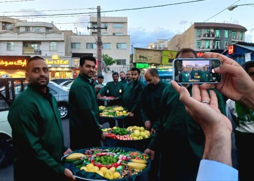 طبق های عشق و ارادت به شمس الشموس بر سر خادمیاران/حضور احمد صادقی مدیر کانونهای خدمت رضوی شهر تهران