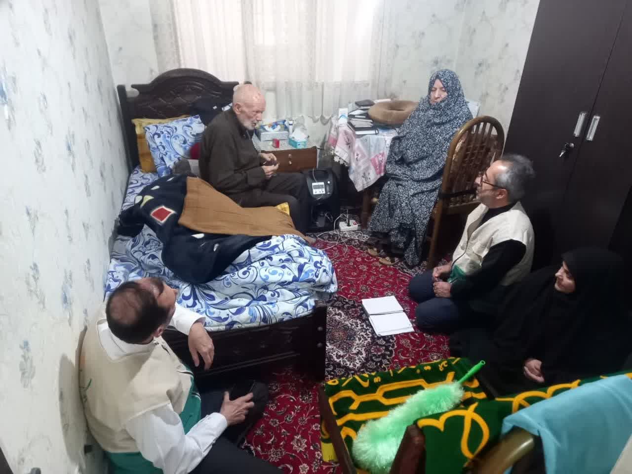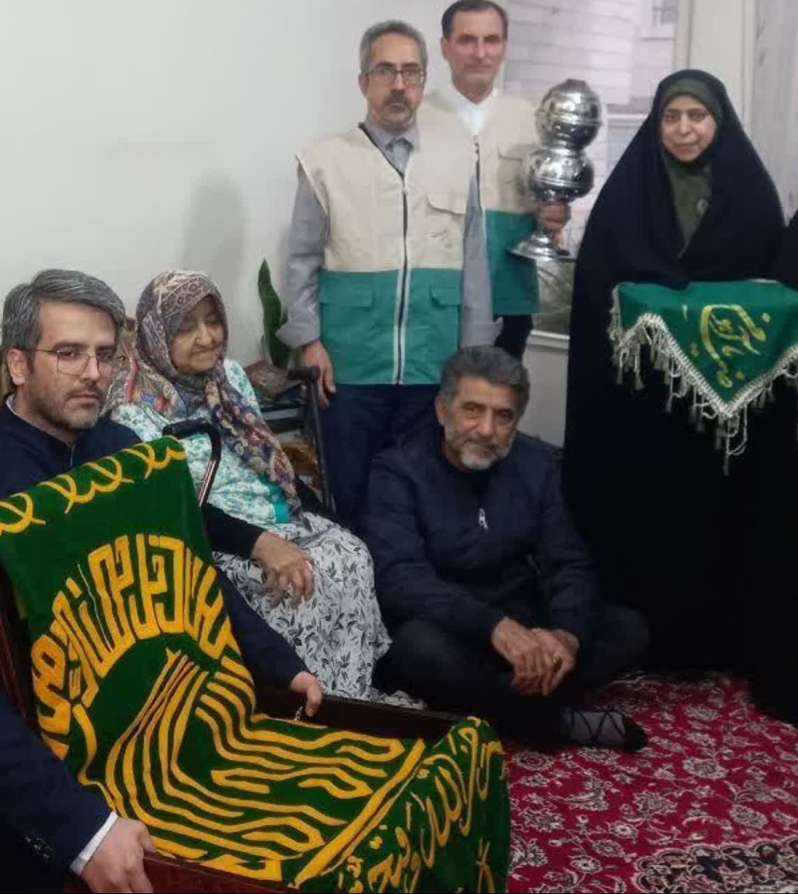 خادمیاران کانون ایثار و شهادت منطقه ۵ تهران در معیت پرچم متبرک رضوی به دیدار خانواده شهید پرویز منصور علی رفتند و از مادر این شهید بزرگوار که در بستر بیماری است، عیادت کردند.