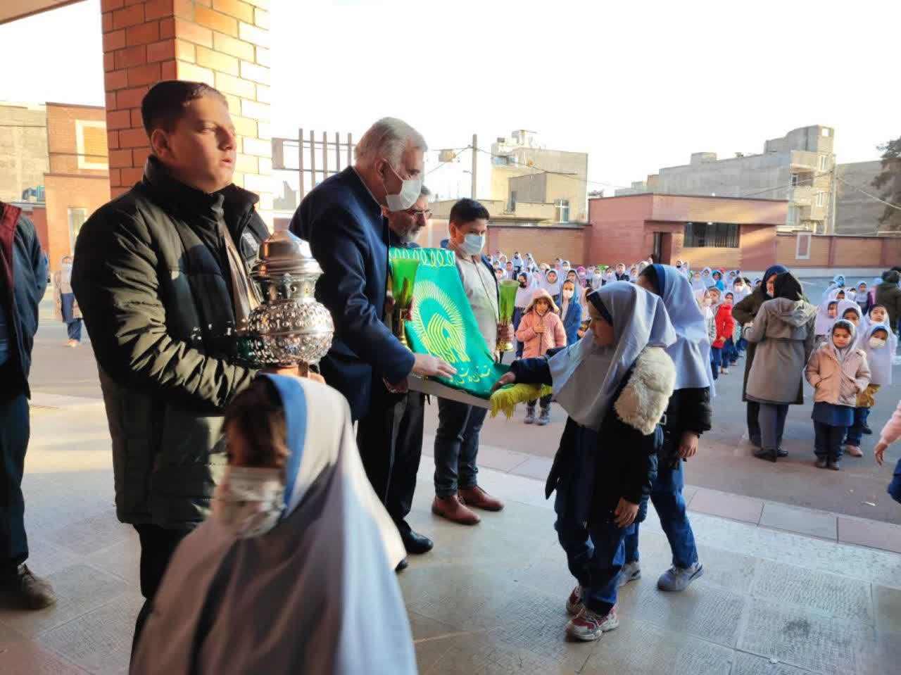 دانش آموزان آموزشگاهی در خادم آباد باغستان شهریار، با عنایت ویژه شهید دفاع مقدس سید محمد حسینی به تبرک جویی پرچم متبرک آستان قدس رضوی نائل شدند.