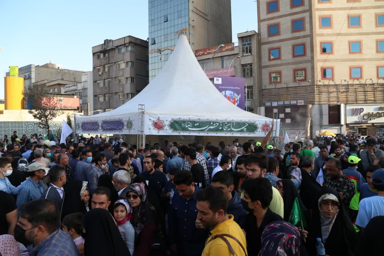 همزمان با فرارسیدن 17 ربیع الاول سالروز میلاد پیامبر اکرم (ص) و امام جعفرصادق (ع) خادمیاران کانون خدمت رضوی منطقه 6 تهران با مشارکت معاونت فرهنگی اجتماعی شهرداری تهران چایخانه حضرت رضا(ع) را در میدان ولیعصر(عج) برپا کردند.